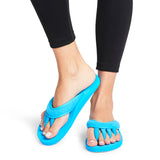 • A rigid foam foot sole supports your arches and helps absorb shock, while our patented cushioned 4 post design separates your toes comfortably and evenly. A padded leather strap stops creases from digging into your feet